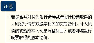 無論是同一控制還是非同一控制,若是發(fā)行股票作為對價(jià)取得的股權(quán)投資,則與股票發(fā)行相關(guān)的交易費(fèi)用從股票溢價(jià)中扣除;若是發(fā)行債券作為對價(jià)取得的股權(quán)投資,則交易費(fèi)用是計(jì)入到負(fù)債的初始計(jì)量金額(體現(xiàn)在“應(yīng)付債券——利息調(diào)整”明細(xì)科目中)。