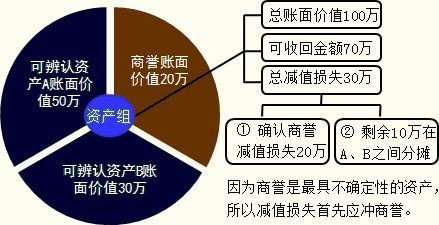 因此而導(dǎo)致的未能分?jǐn)偟臏p值損失金額,應(yīng)當(dāng)按照相關(guān)資產(chǎn)組中其他各項(xiàng)資產(chǎn)的賬面價(jià)值所占比重進(jìn)行二次分?jǐn)偂?/P>