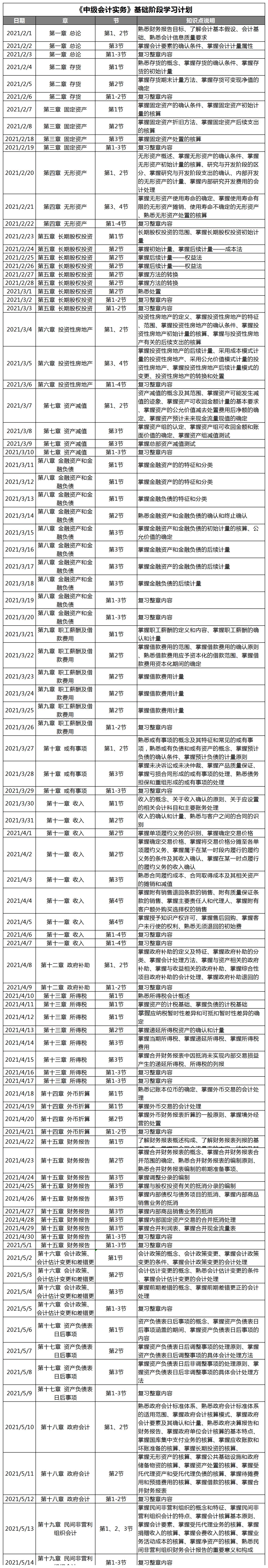 2021年基礎階段學習計劃(中級會計實務)