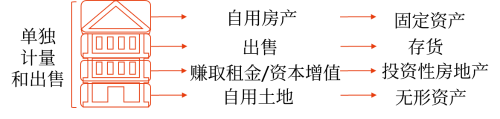 1.自用房地產(chǎn):即為生產(chǎn)商品、提供勞務或者經(jīng)營管理而持有的房地產(chǎn)。(固定資產(chǎn)、無形資產(chǎn))
